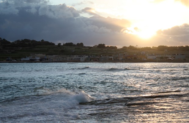 Pastelové svetlá v podvečer, blízko kamenných útesov, svetlá za zálivom, ktorý je obkolesený rybárskymi domami. Vidíme naň aj z hotelového posúvacieho okna, vidíme, ako sa prehýbajú palmy a vejú uteráky na šnúre, ľuďom na chodníkoch lietajú vlasy a vlny narážajú o pobrežné skaly – dni v Marsaskale boli dažďové, ale aj tak s viditeľným zapadajúcim slnkom. Takmer ho odfúkol vietor. Takmer mi odfúkol aj obal z jahodových Mentosiek.