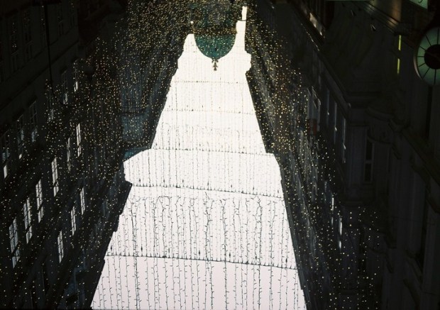 po zotmení prísť k milým spittelbergským trhom, v podchode nájsť miesto obrastené popínavými kríkmi, P. povie, že si tu vie predstaviť svoju svadbu a na pamiatku si tu urobíme niekoľko tmavých záberov. Posledné pohľady na svetlá na stromoch a vo výkladoch, na žiariace hviezdy v jazere a na vianočné gule, v ktorých sa mihajú naše odrazy.